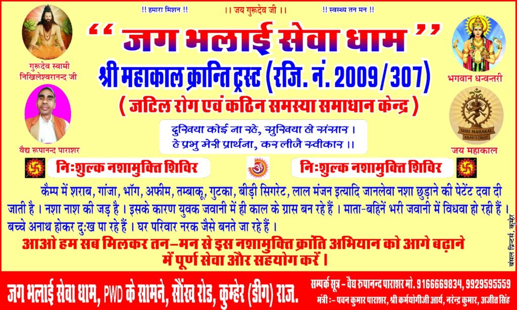 рд╢реНрд░реА рдорд╣рд╛рдХрд╛рд▓ рдХреНрд░рд╛рдВрддрд┐ рдЯреНрд░рд╕реНрдЯ рдХреА рдкреНрд░реЗрд░рдгрд╛ рд╕рдВрддреЛрдВ рдФрд░ рдпреЛрдЧрд┐рдпреЛрдВ рд╕реЗ рдорд┐рд▓реАред рд╕рди 1997 рд╕реЗ рд╕рд╛рдзрдирд╛, рдпреЛрдЧ рдФрд░ рдЖрдзреНрдпрд╛рддреНрдорд┐рдХ рдорд╛рд░реНрдЧ рдкрд░ рдЪрд▓рдХрд░ рд╕реЗрд╡рд╛ рдХрд╛рд░реНрдпреЛрдВ рдХреА рд╢реБрд░реБрдЖрдд рд╣реБрдИред рд╕рди 2009 рдореЗрдВ рд╕рдорд╛рдЬ рд╕реЗрд╡рд╛ рдФрд░ рд╕реНрд╡рд╛рд╕реНрдереНрдп рдЙрддреНрдерд╛рди рдХреЗ рд▓рд┐рдП рдЯреНрд░рд╕реНрдЯ рдХрд╛ рдФрдкрдЪрд╛рд░рд┐рдХ рд╕реНрд╡рд░реВрдк рддреИрдпрд╛рд░ рд╣реБрдЖред